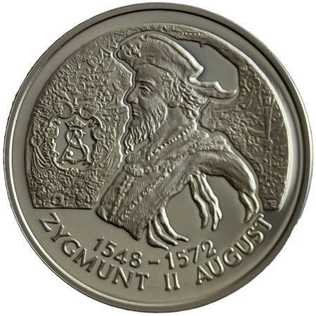 Polska moneta obiegowa wydana przez Mennicę Warszawską o nakładzie 13 000 sztuk. Moneta upamiętnia wielkiego księcia litewskiego i króla Polski Zygmunta II Augusta. Zygmunt II August był synem Zygmunta I Starego i Bony Sforzy żył w latach 1520-1572. Podczas panowania połączył w jeno państwo Koronę Królestwa Polskiego i Wielkie Księstwo Litewskie na mocy Unii Litewskiej. Na monecie przedstawione jest popiersie Zygmunta II Augusta.
