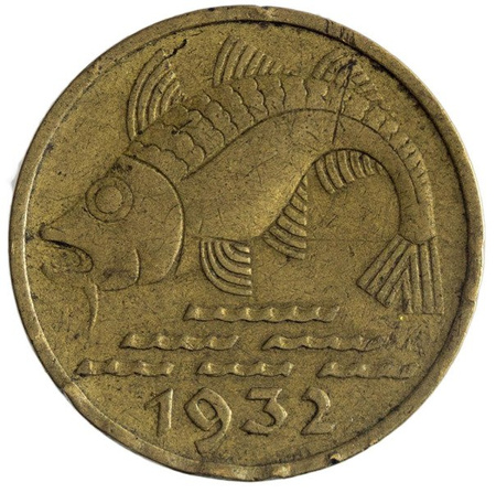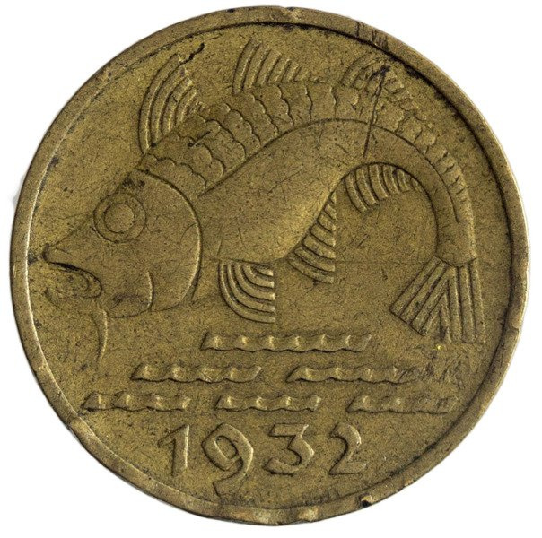 Moneta z Wolnego Miasta Gdańsk z 1932 roku o nakładzie 5 000 000 sztuk. Wolne Miasto Gdańsk istniało w okresie międzywojennym, pod ochroną Ligi Narodów. Powodem powstania Wolnego Miasta Gdańsk było przegranie I wojny światowej przez Niemców. Na mocy traktatu wersalskiego Gdańsk został odłączony od Rzeszy Niemieckiej, obszar został zdemilitaryzowany. Państwo-Miasto posiadało własną konstytucję zatwierdzoną przez Ligę Narodów oraz hymn, Parlament i Senat. Gdańsk po II wojnie światowej został przyłączony do terytorium Polski.