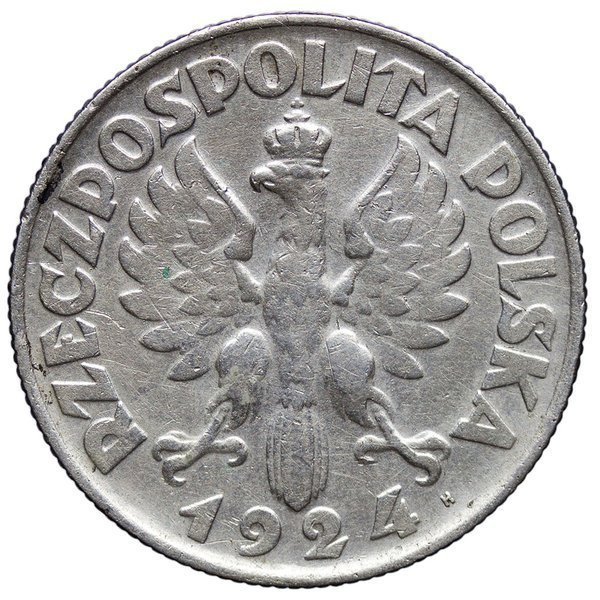 Polska moneta obiegowa o nakładzie 1 200 000 sztuk. Jedna z najbardziej poszukiwanych "dwójek" okresu międzywojennego. Wybita w 1924 roku z literą H, w mennicy w Birmingham.