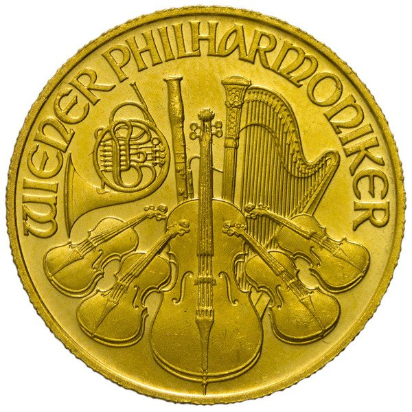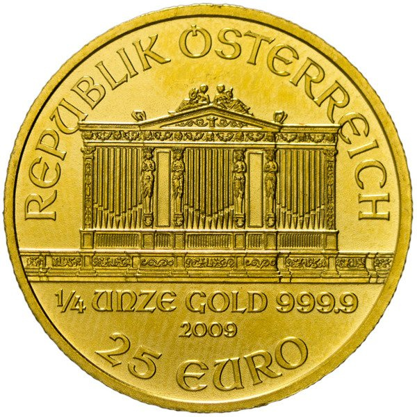 Austriacka złota moneta bulionowa wykonana ze Złota 999, o masie 1/4 uncji (7,78g).