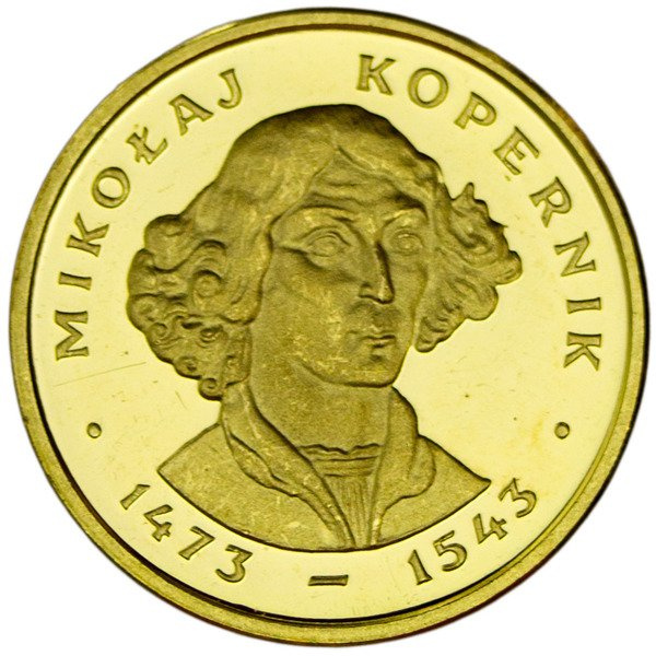 Polska złota moneta o nominale 2000 zł i nakładzie 5000 sztuk. Moneta upamiętnia polskiego astronoma Mikołaja Kopernika. Kopernik żył w latach 1473-1543. Mikołaj Kopernik opracował teorię Heliocentryczną( Mówi ona o tym że ziemia kręci się wokół słońca). Kopernik napisał książkę " O obrotach sfer niebieskich " która mówiła o wyżej wymienionej teorii heliocentrycznej lecz ta teoria była sprzeczna z tekstem biblii i przez kilkaset lat po napisaniu książki była ona na liście ksiąg zakazanych.