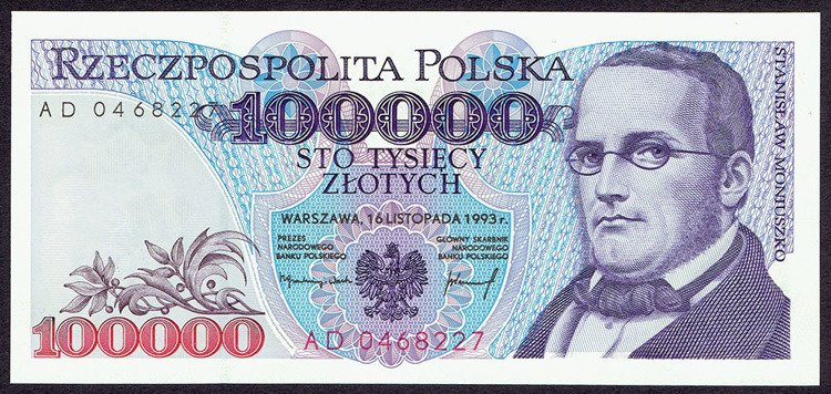 Polska PRL 100 000 Złotych 1993 - Stanisław Moniuszko, seria AD