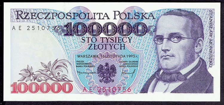 Polska PRL 100 000 Złotych 1993 - Stanisław Moniuszko