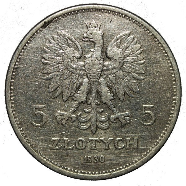 Polska 5 Złotych 1930 rok - Sztandar, srebro .750