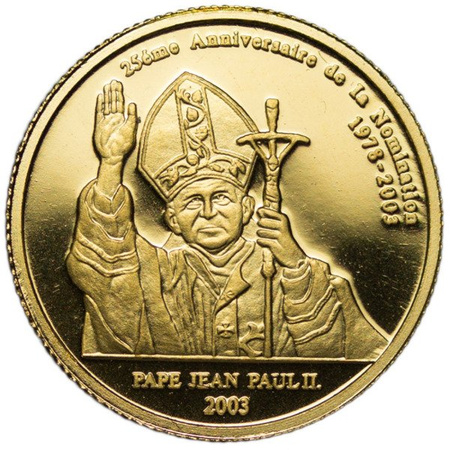 Złota moneta z serii Najmniejsze Złote Monety, przedstawiająca Jana Pawła II. Moneta upamiętnia 25. rocznicę pontyfikatu Jana Pawła II.