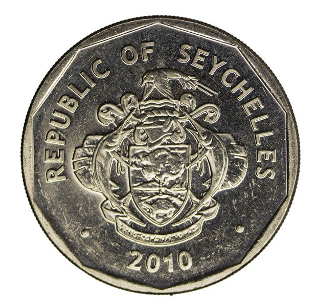 Moneta obiegowa z Seszeli o nominale 1 rupee. Zdjęcie poglądowe.
