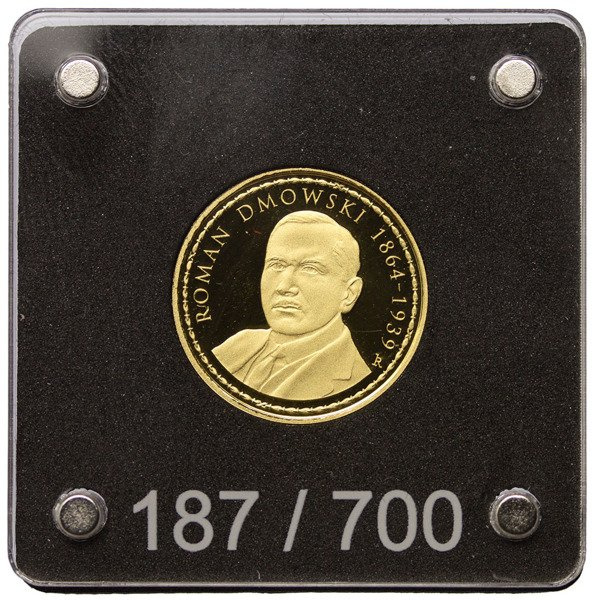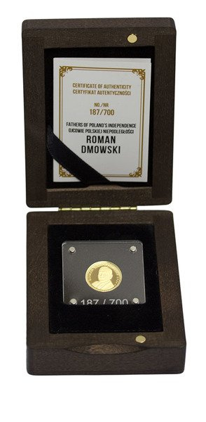 Moneta upamiętnia 100 Rocznicę odzyskania niepodległości przez Polskę. Na monecie ukazany jest Roman Dmowski.
