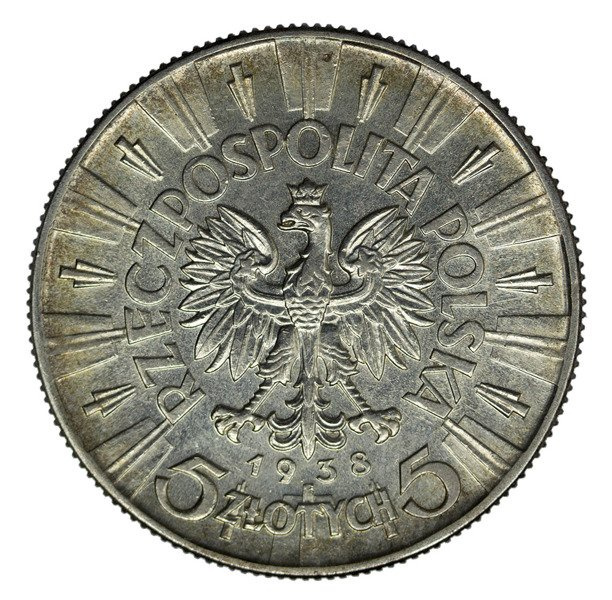 Polska 5 Złotych 1938 - Józef Piłsudski, srebro .750