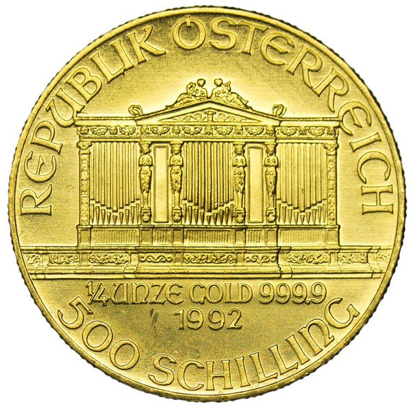 Austriacka złota moneta bulionowa wykonana ze Złota 999, o masie 1/4 uncji (7,78g).