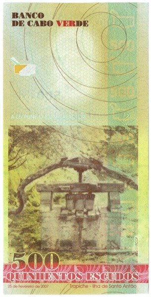 Banknot z Republiki Zielonego Przylądka o nominale 500 escudos. Na banknocie przedstawiony jest Roberto Duarte Silva chemik z Republiki Zielonego Przylądka.