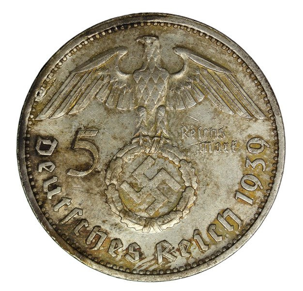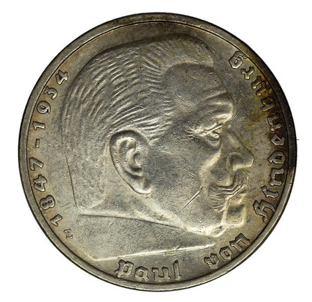 Niemcy 5 Marek 1939 E - Paul von Hindenburg, Swastyka