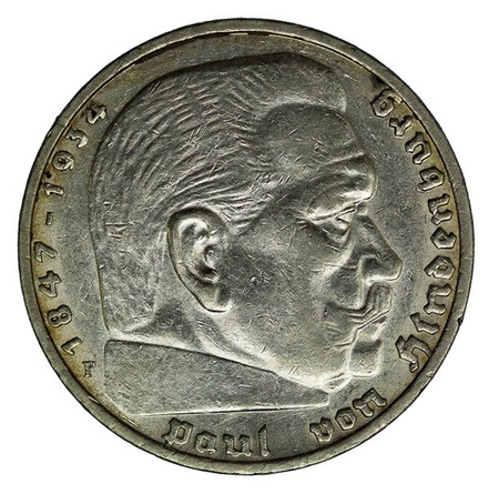 Niemcy 5 Marek 1937 F - Paul von Hindenburg, Swastyka