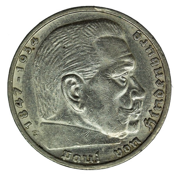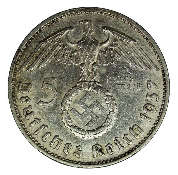 Niemcy 5 Marek 1937 E - Paul von Hindenburg, Swastyka