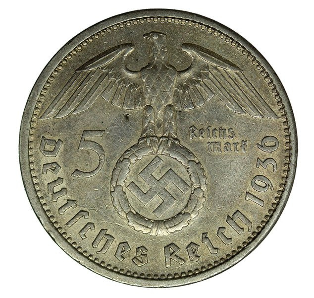 Niemcy 5 Marek 1936 A - Paul von Hindenburg, Swastyka