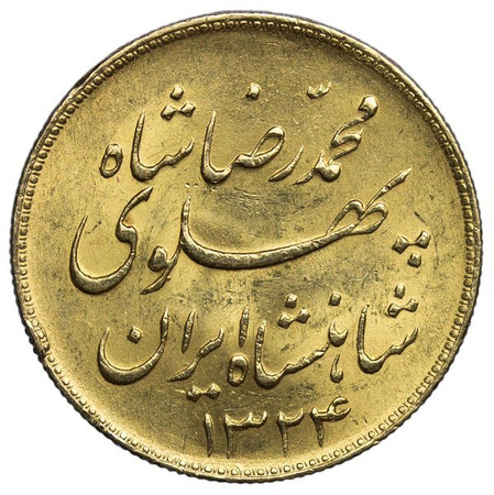 Irańska złota moneta wykonana ze Złota 900, o masie 8,14 grama.