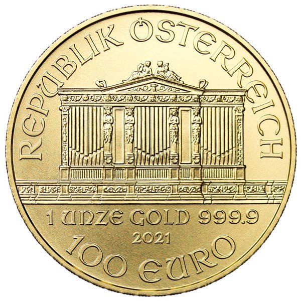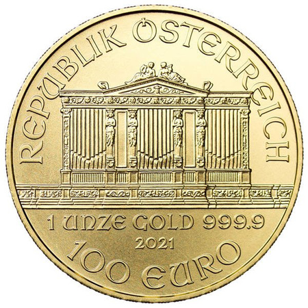 Austriacka złota moneta bulionowa wykonana ze Złota 999, o masie 1 uncji (31,1g).