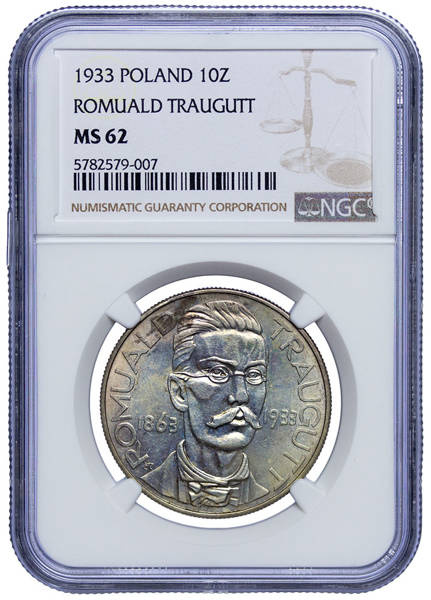 Polska 10 złotych 1933 - Romuald Traugutt, NGC MS62